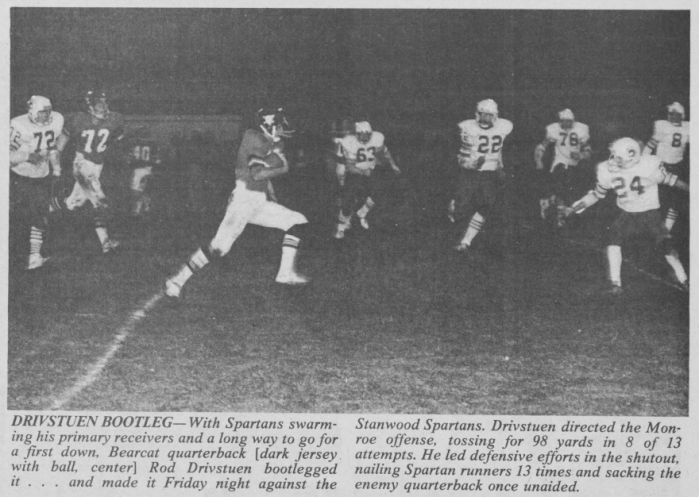 In the 1970s, Rod Drivstuen helped propel Monroe football with his extraordinary talent at quarterback. With his rushing, passing, and leadership ability, Drivstuen was able to succeed not only in high school, but also at the college level.