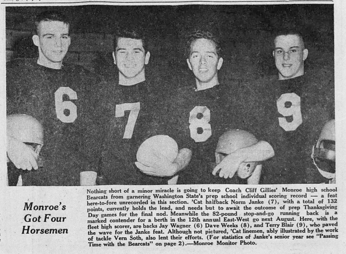 The second entry in the four part series of the greatest running backs in Monroe football history. This article details the story of Norm Janke, a star running back and state-scoring leader in 1957 during the golden age of Bearcat football.