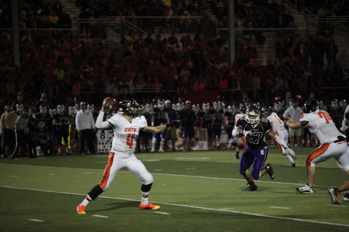 To set the tone early, Zach had one of his finest games in the opening game against Meadowdale. In a 55-9 blowout, Zimmerman was remarkably efficient as he completed twelve of fifteen passes, resulting 282 passing yards and four touchdown passes. Rather than simply being a pocket passer, Zimmerman rushing ability made him a versatile athlete. In addition to his eighteen passing touchdowns, Zach scored nine rushing touchdowns during Monroe’s winning streak. His finest game of the steak came at home versus Kamiak, where he produced otherworldly numbers against a team that had beaten Monroe the last two seasons in close games. Zimmerman tallied 236 passing yards as well as four touchdown passes and a rushing touchdown during a 56-7 rout. After beating Jackson in another blowout, the Bearcats traveled to Lake Stevens in a game that would decide the conference champion.