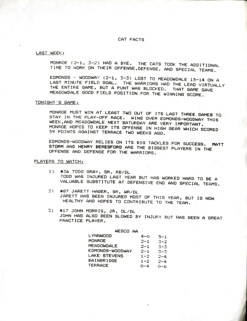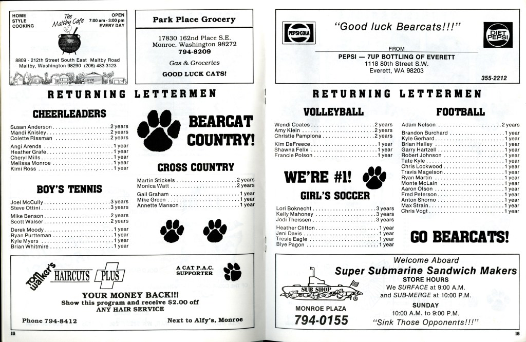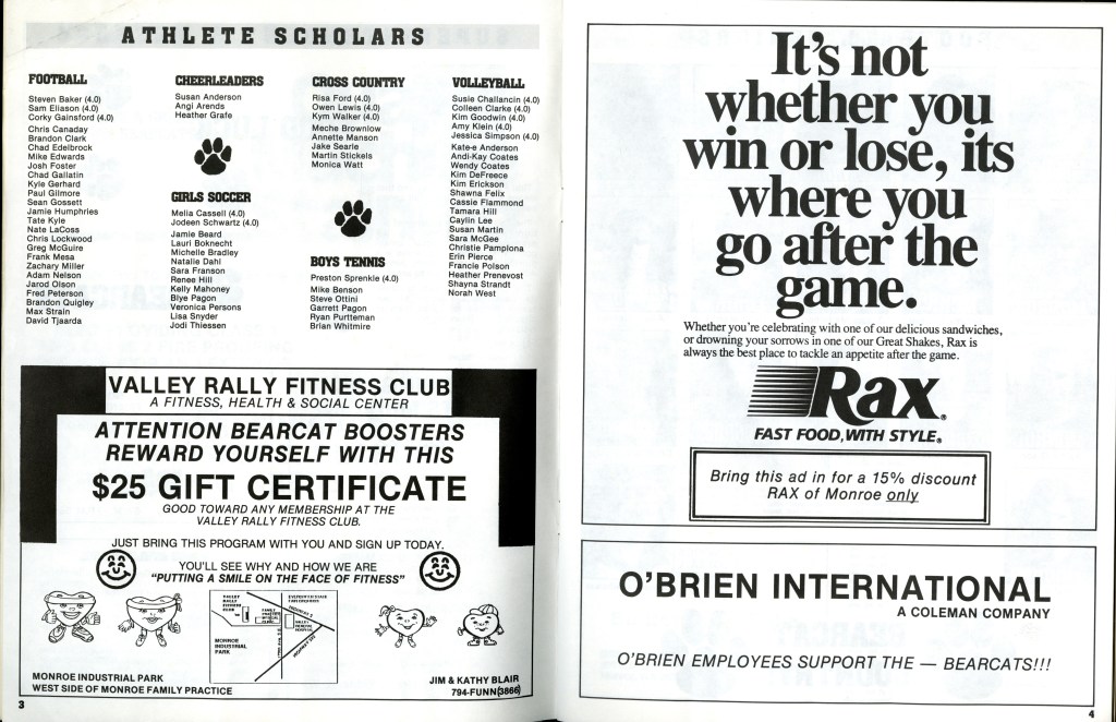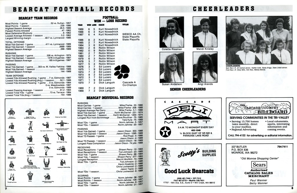 Special thanks to former head coach Kurt Nowadnick for providing these programs from the 1980’s and 1990’s. These programs are rare today and to have them preserved so well is remarkable. Nowadnick’s generosity, interest in the site, and accomplishments as a head coach for Bearcat football are greatly appreciated.