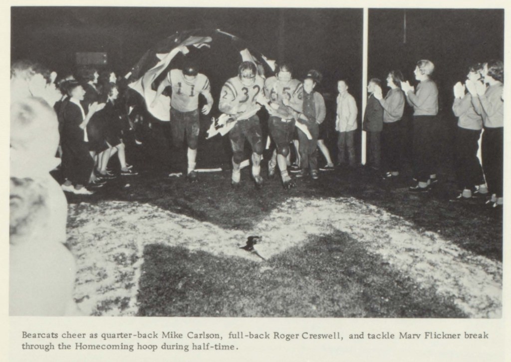 At the beginning of the 1962 season, the Bearcats faced a difficult test. The campaign started off with a contest against Anacortes, a bigger, stronger AA team. Despite being an underdog, Monroe fought Anacortes to a near standstill before falling 6-0. The upstart Bearcats were not phased by this defeat as the emerging core of players solidified their hold on starting positions, with the speedy Roger Ohlsen and hard-hitting Roger Creswell running the football and Mike Carlson as the starting quarterback. Despite featuring a less potent offense, Monroe’s defense stole the show as the Bearcats shut out their next four opponents. With players playing both offense and defense, many of the major contributors helped the team on all fronts as the Bearcats were ranked #12 in the state. Racing out to a 4-1 record, Monroe’s Homecoming game was a highly anticipated contest against Lake Stevens that had title implications on the line.[4] In front of a frenzied home crowd, the Bearcats led 7-2 by halftime but still faced a formidable enemy with another half left. Lake Stevens scored once in the third quarter and a final time in the fourth as the Bearcats were slowly worn down as time dragged on. Completely exhausted and outmatched, Monroe was unable to muster anything against Lake Stevens in the closing minutes besides another brief skirmish between two opposing players. With the clock running out, the Bearcats once again fell to their rivals 15-7.[5] Monroe suffered another backbreaking defeat the next week against Langley as Lake Stevens went on to become the Cascade League champions. The Bearcats closed out their final two games of the season by crushing Concrete and Sultan, finishing with a solid 6-3 record. Optimism for 1963 was growing as the young core of sophomores was going into their final season, hungry for nothing less than a league title.